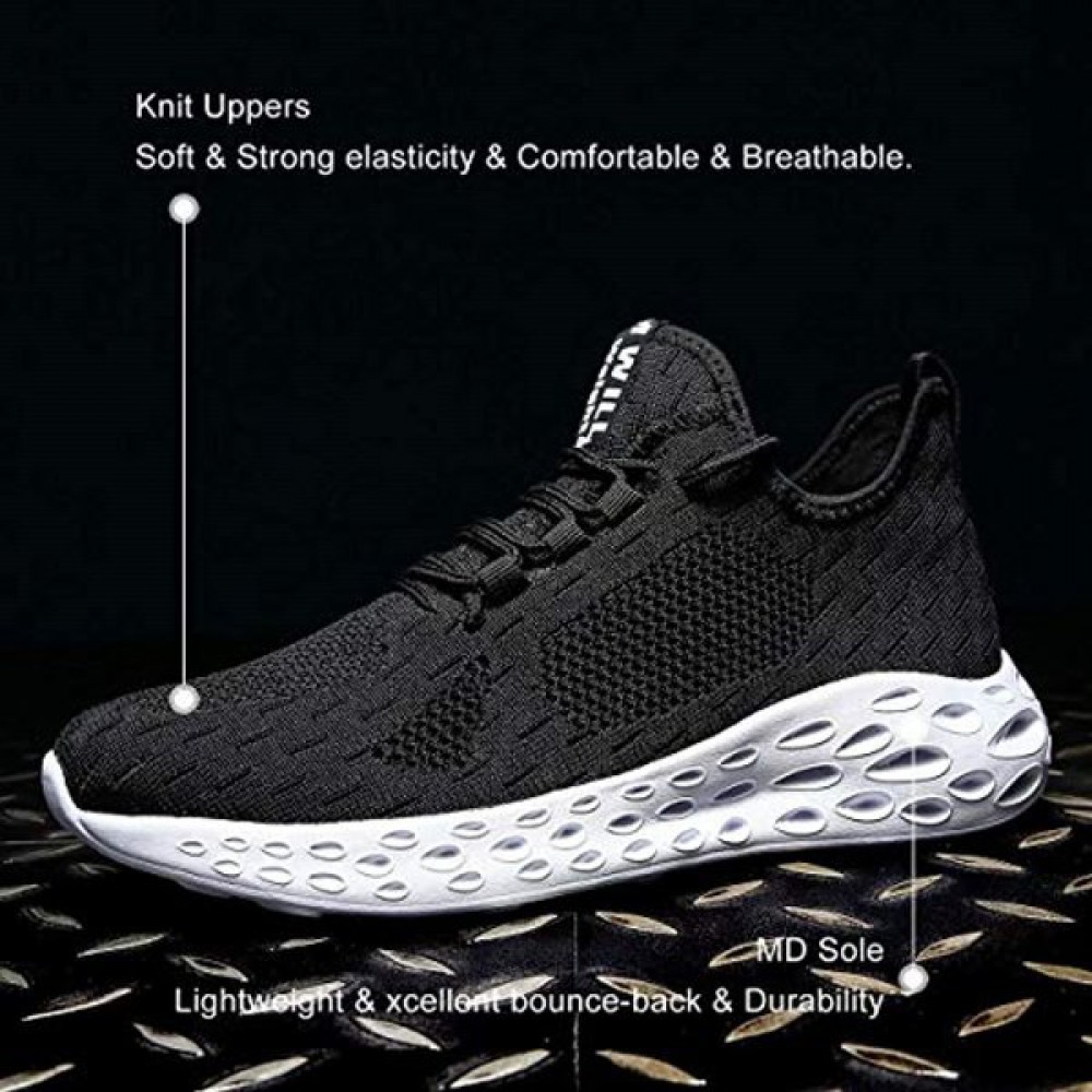 Mens Runing Shoes Walking Non Slip Blade Type Sneakers Black White