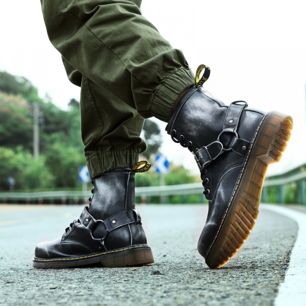 New Martin Boots Men British Style Leather Tooling Boots High-Top Trend Autumn Men's Desert Military Boots