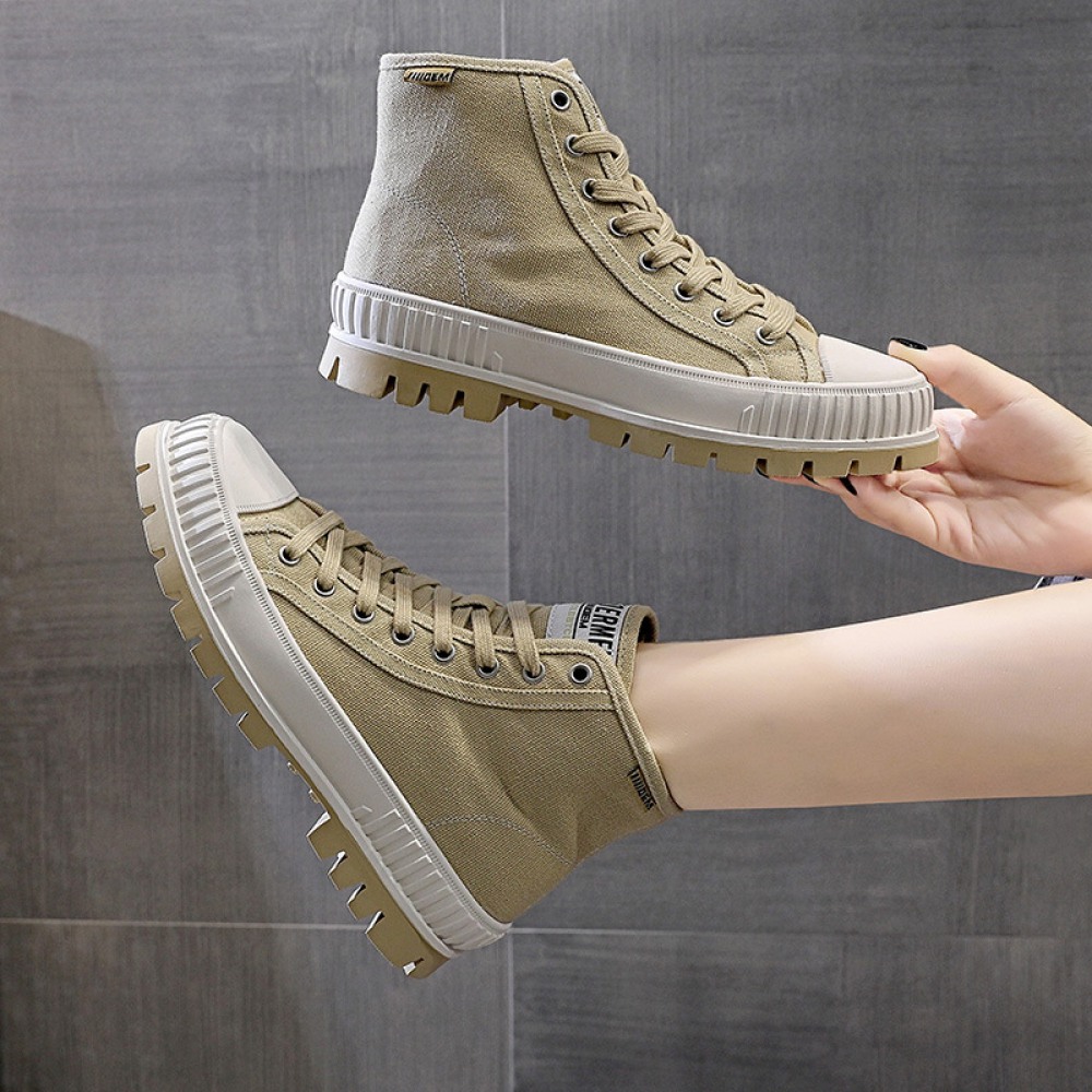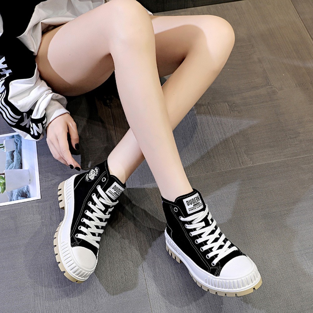 New Canvas Shoes Women's Trendy Shoes High-Top College Style Flat Casual Boots Sports Thick-Soled Trendy Sneakers