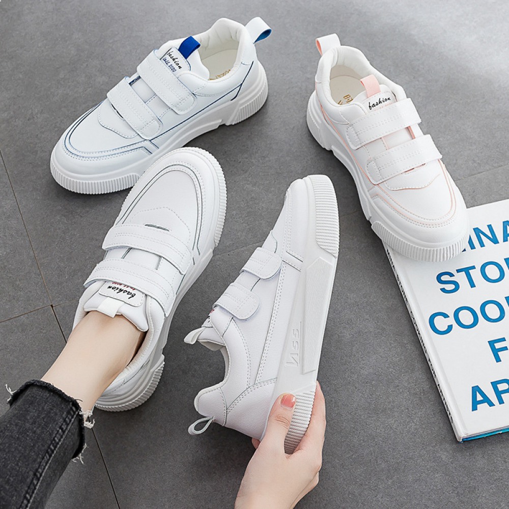 Spring New Velcro White Shoes Women's Casual Shoes Female Students Breathable Running Shoes Women