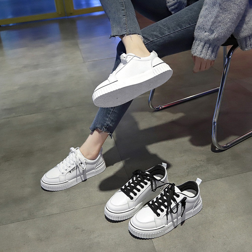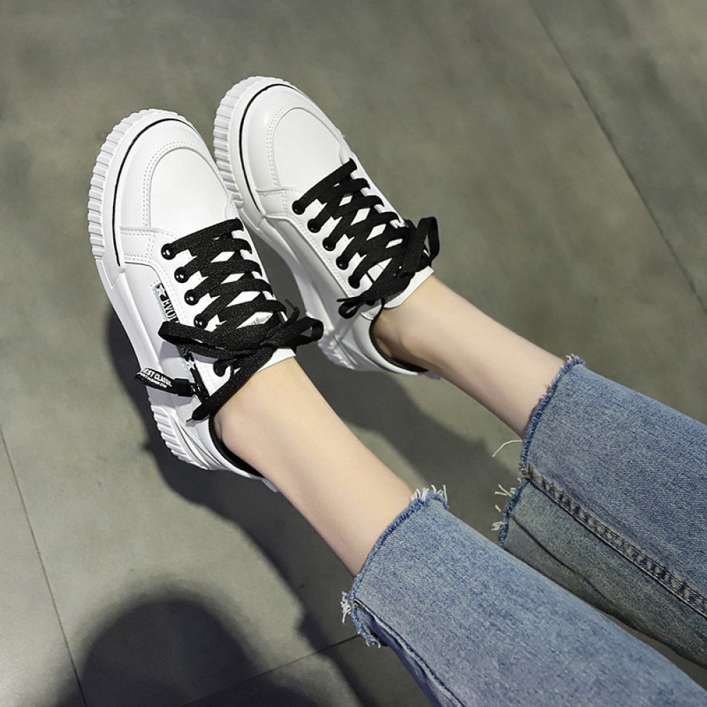 Spring White Shoes Female Students Running Board Shoes Lace-Up Flat-Bottom Breathable Casual Shoes Women